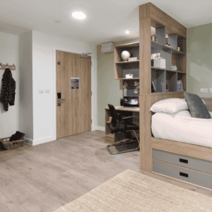 You can choose from En-suite rooms (from £153 pw) arranged into four, five and six-bedroom cluster flats. With your own private bathroom and shared kitchen. Also available are our self-contained studios with their own kitchen and bathroom from £190 pw if you’d prefer something more private.