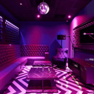 The Karaoke lounge has a cool vibe and is a great place to challenge your flatmates and sing the classics. Of course classic mirror ball also included.